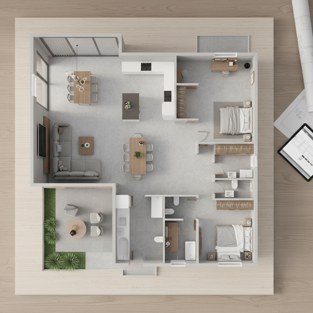 Kesalahan terbesar adalah menempatkan kamar tidur utama persis di sebelah ruang tamu open plan tanpa penyangga. Suara obrolan di malam hari akan langsung mengganggu istirahat Anda.
